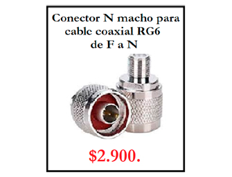 Conector N macho para cable coaxial RG6 de F a N